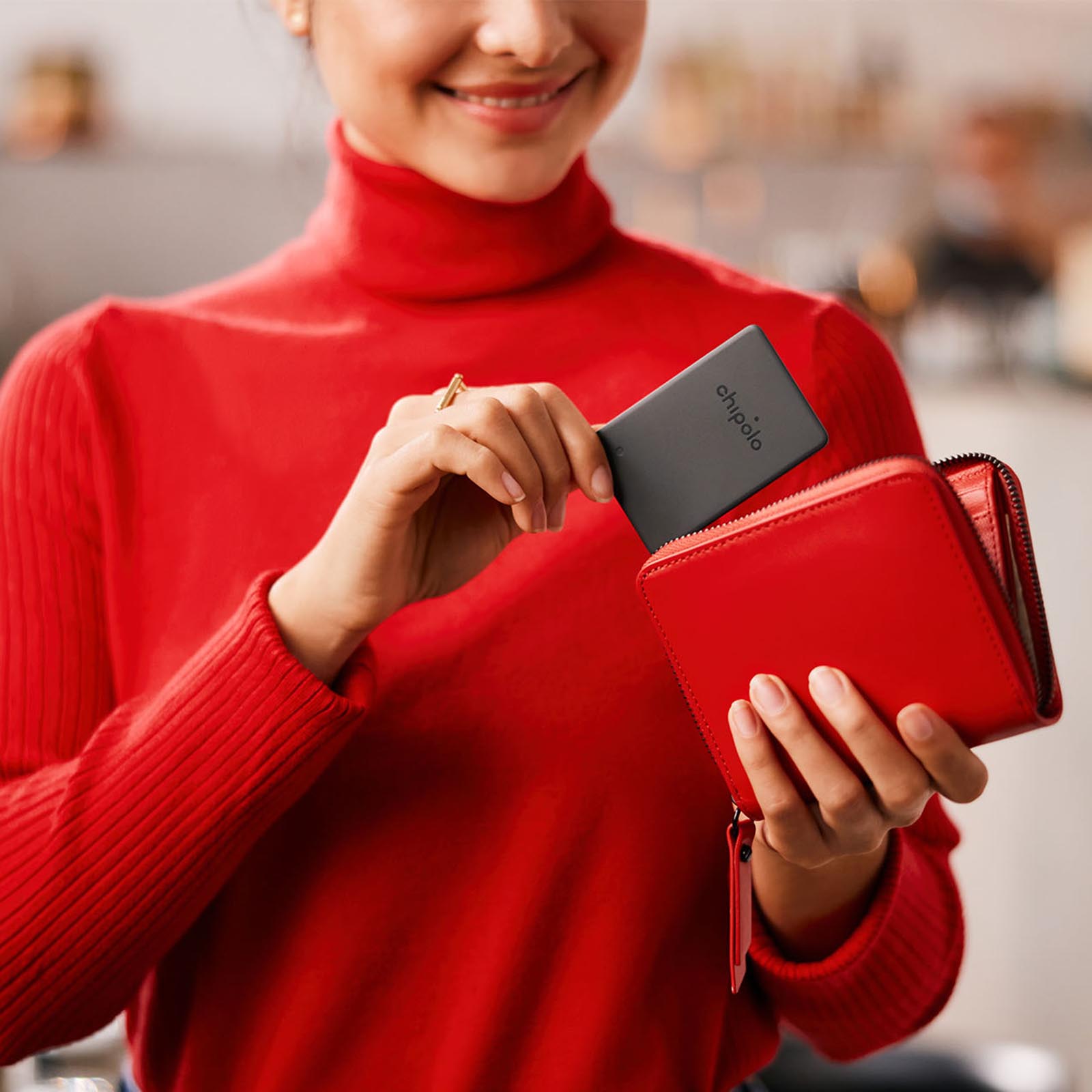 1. Вложите Chipolo CARD Spot в кошелек или сумку.