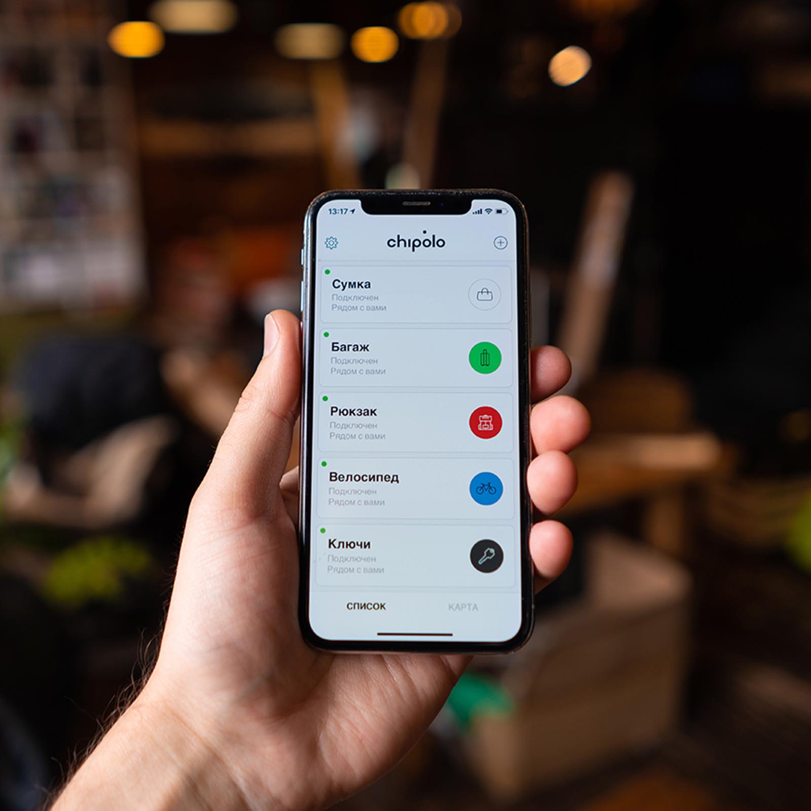 Приложение Chipolo русифицировано и обладает широким набором функций. Вы можете добавить в него сразу несколько брелков, каждый — для своей важной вещи.